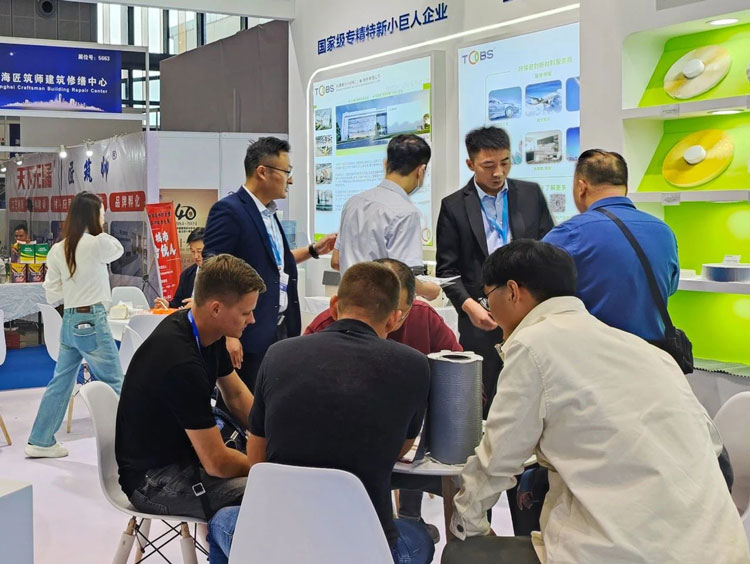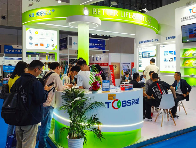 緊貼發(fā)展新動態(tài),探索行業(yè)發(fā)展新賽道。在本屆防水盛會上,科建帶來了液態(tài)卷材、FLEX三明治泛水帶、自粘防水透氣膜、EVA丁基膜、氟碳膜卷材等防水新品,給新老客戶提供更多高性能防水方案??平ㄒ矊⒓訌?qiáng)與行業(yè)同仁的合作與交流,共同推動防水行業(yè)的健康發(fā)展。