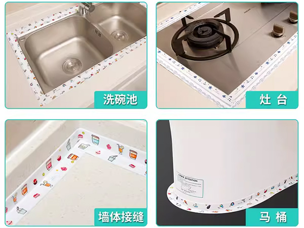 KJ-PVC廚衛(wèi)防水條是以優(yōu)質(zhì)PVC、亞克力膠為主要原料,配以其他高分子材料加工制成的一種自粘防水防霉密封膠帶,其特點(diǎn)是:指壓貼合容易,與瓷磚、大理石等基材均有良好的粘接性,具有防水性,能長(zhǎng)期保持黏彈性和密封性。該產(chǎn)品背膠不含溶劑,應(yīng)用范圍廣,是一種較為美觀的廚衛(wèi)防水密封材料。